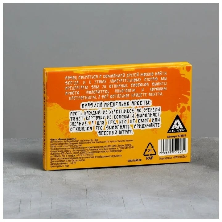 Купить игра для компании "фанты буханты" 20 карт от 100 руб. с доставкой до пункта выдачи в Нюрбе. Интернет магазин ДекаМаркет. Оплата при получении.